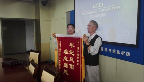 最后,各位老校友纷纷表示将继续关心、关注学院的发展,祝愿学院明天更美好!并向学院赠送一面锦旗。