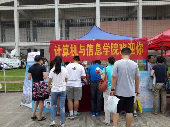 6月25日上午,“2015年部委高校在皖招生咨询会”在我校翡翠湖校区东操场隆重举行。为加大今年的高招宣传力度,切实提高P站视频 生源质量,学院各系所任课老师和辅导员亲临高招咨询会现场,为广大考生及其家长提供咨询。