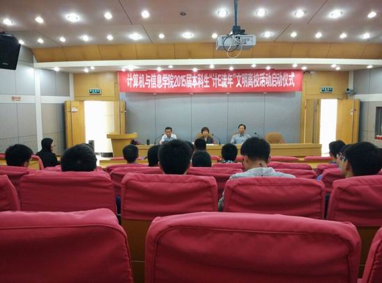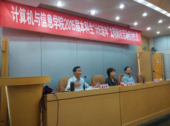 2015届本科生“计E流年”文明离校活动启动仪式在学术会议中心二楼小报告厅顺利举行。本次活动邀请了校关工委鲍良弼教授、张素叶教授和学院原调研员吴挺书记,学院2011级辅导员叶璟及2015届毕业生代表参加了此次活动。