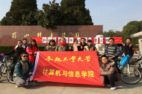 此次骑行由翡翠湖校区北门出发,终点为大蜀山烈士陵园。当天虽然寒风凛冽,但同学们的高涨热情,让这场骑行之路变得温馨而有意义。到达烈士陵园后,学生代表首先发言,为同学们讲解了“一二.九运动”的事情背景,回顾了当年青年学生在“一二九运动”中不畏日寇强暴,弘扬爱国精神的感人事迹,让同学们深切感受爱国的重要性,并树立责任意识。随后同学们进行了庄严的爱国宣誓,表达当代大学生“勿忘国耻,奋发进取,用行动实现‘中国梦’”的爱国热情。