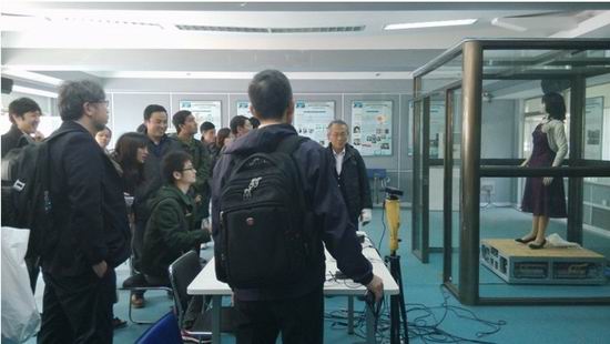 情感计算研究室,观看了人形机器人的人机动作同步演示,日方人员还饶有兴趣的亲自上前与机器人互动。研究室人员还给他们介绍了情感计算研究室及重点实验室机器人以及人机交互领域的研究进展。