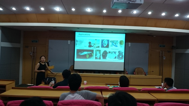吕琳教授的报告题目为“Fabrication Oriented design and Optimization”。吕琳教授在报告中系统分析了目前主流的3D打印技术以及3D打印中的几何问题,并重点对其在打印模型强度和质量之间平衡问题上的工作进行了分析和介绍。最后吕琳教授对在场的学生和老师就研究选题给出了一些建议,指出课题新颖性、实用性和挑战性的重要意义。