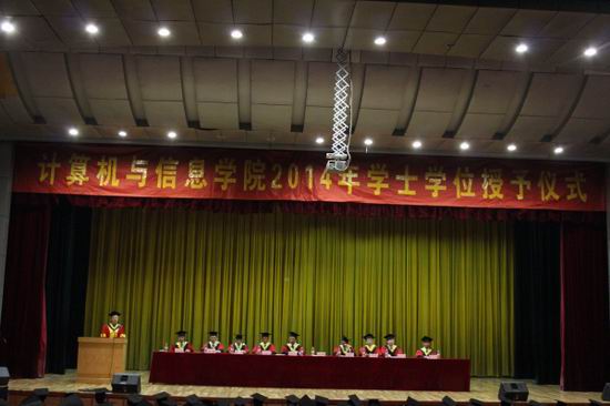 2014届本科生毕业典礼暨学士学位授予仪式在屯溪路校区斛兵礼堂举行。副校长吴玉程、学院领导和部分导师代表出席了仪式。院党委副书记、副院长何庆领主持仪式。