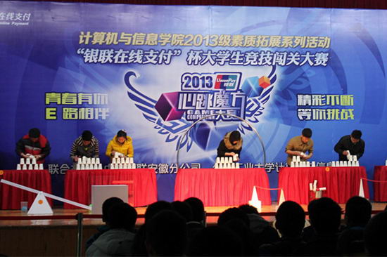12月8日晚,P站视频 “筑梦青春”2013级素质拓展系列活动第二季暨“银联在线支付”杯大学生竞技闯关大赛在翡翠湖校区综合楼301室圆满落幕。中国银联安徽分公司和我校党委学工部、P站视频 相关单位负责人出席了本次活动。