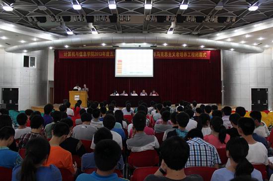 2013年5月20日晚 19时,学院于翡翠湖校区综合楼多功能厅举办了2013年度五四表彰大会暨第六期青年马克思主义者培养工程闭幕仪式。学院党委副书记、副院长何庆领及其他相关负责老师出席本次大会。