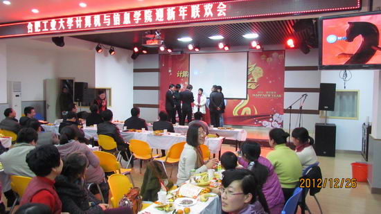 全体教职工两百余人在屯溪路校区新工会俱乐部多功能厅举行2013迎新联欢会。校长徐枞巍、副校长兼院长刘晓平、党委书记蒋建国以及学院相关领导共同出席了此次迎新春联欢会。