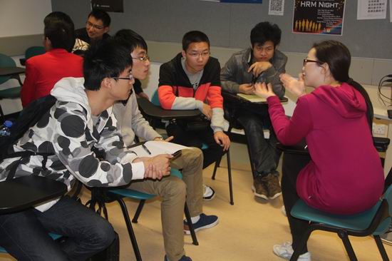 在香港城市大学,我们参观了其三维动作捕捉实验室、视频检索实验室等,负责接待的汪建平老师向我们介绍了城市大学计算机系的学生培养情况、研究方向及城市大学和境内各高校的联合培养研究生情况,最后,城市大学的6位优秀研究生与我校10级实验班学生进行了面对面的交流,话题涉及学习、未来发展与规划等。