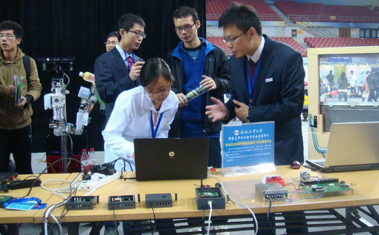 ,带着“大学生创新与创业实践项目——设施农业物联网智能控制及个性化服务平台”应邀参展,该项目依托自行研发的“农业物联网综合服务平台”,以生产、仓储、物流、消费产业链为主线,服务于生产加工者、物流调度者、专家与学者、消费者、政策制定者等众多群体,已与安徽省农委等农业部门达成合作共识,并成功建成常州现代温室大棚集群试验点。参展期间,通过周培峰、周尧的精彩讲解、系统实物展示与动画演示的形式详细介绍了作品的功能、性能及商业前景,赢得了大家的称赞,获得组委会专家的好评。
