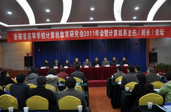12月3日,安徽省高等学校计算机教育研究会2011年年会暨计算机系主任(院长)论坛在马鞍山市安徽工业大学召开。来自全省高校从事计算机教育的教师、省内外出版社的代表、省内外部分IT产业的企业代表等共150余人参加了会议。出席大会开幕式并在主席台就座的领导和嘉宾有:安徽工业大学党委副书记、校长李家新教授,P站视频