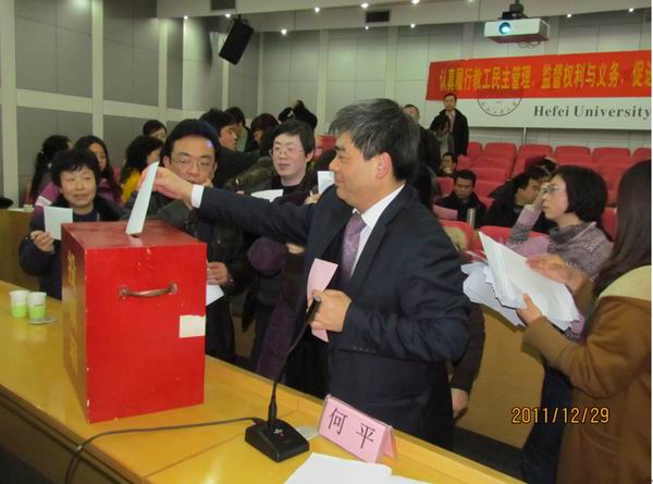 接下来进行了分组讨论。代表们对学院在过去一年取得的成绩以及广大教职工的工作态度表示了肯定,并分别对十二五规划和二次分配方案提出了意见。根据议程,大会选举产生了新一届教代会执委会委员和院工会委员,同时投票选举了2011年度学院十件大事。