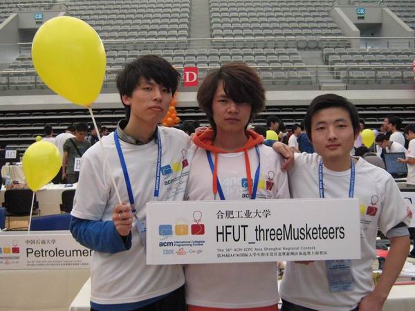 10月15号到16号,第二场区预赛在复旦大学举行。我们派出了由来自计算机信息学院的08级的袁庆同学和09级的叶雨翔、朱辉同学组成的队伍前往参赛。最终勇夺银牌。