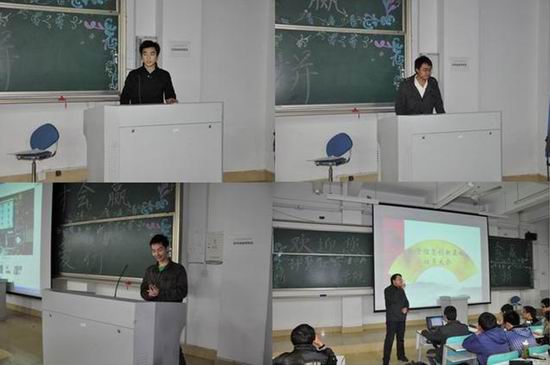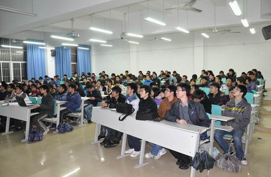 谢仁强同学介绍了可以遥控至指定区域探测甲烷浓度的遥控甲烷探测小车;马文森同学介绍了可以通过静电和风力自动除尘、清理堵塞尘埃的“智能除尘器”,并详细讲解了自己课内、课外学习的经验;方泽伟同学介绍了“无线遥控器破解器”、“自动控温装置”和可以实现远程监听的“激光监听装置”,引起了在座同学们极大的兴趣,博得阵阵掌声;岳周龙同学介绍了可以让一叠硬币在单摆运动中不落下的“基于自由摆的平板控制系统”,并讲解了该系统的算法原理;阳小东同学介绍了可以使一个平台倾斜至键盘输入的指定角度或是保持水平的“承载平台平衡调整系统”;李锦青同学介绍了通过声音往返时间精确测距离并显示出来的“超声波测距系统”;汤浪同学介绍了含有Arm7和Arm11、机械手和小车底盘的远程遥控机械平台。该平台可以通过Wifi在任何一台联网的计算机上通过视频和键盘控制机械平台的运动。随后他还讲解了自己学习Arm的经验,为一些对Arm感兴趣的同学指出了一条道路。他们还介绍了许多大学课内学习的经验,谈到了课外技能学习的经历。各学长都现身说法,鼓励大家积极参与到创新基地的活动中来。