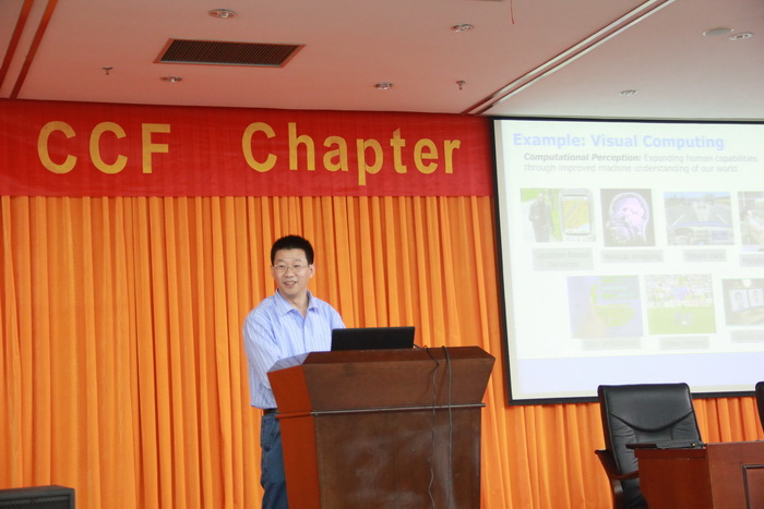 翡翠湖校区图书馆报告厅隆重举行,这是全国首家CCF Chapter活动,中国计算机学会杜子德秘书长、副秘书长及会员部刘雨部长,英特尔中国研究院王涛博士在P站视频