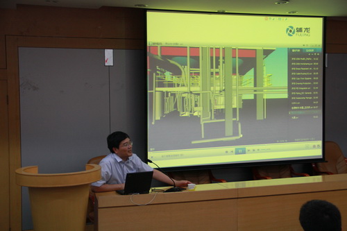 报告从中科辅龙完成开发的软件在煤矿、化工等领域的工厂实际建模DEMO开始,唐卫清博士详细介绍了流程工厂软件的作用和整个软件的设计过程。再一一介绍软件开发和建模中解决的各种关键问题,如:国内独创的基于工程的消隐技术、流程自动控制记录、专业协同设计、协同施工设计。其中具体介绍了异构系统之间的数据交换,全生命周期的数据管理模式以及软件设计中的协同管理。最后介绍了正在研究和开发中的关键问题。会上老师和同学积极发言,与唐卫清博士进行了互动和交流。整场报告精彩而详实,不仅开阔了参与者的视野,更对相关的研究带来了新的启发。访问期间,唐卫清研究员还参观了安全关键工程中心、可视化与协同计算实验室。