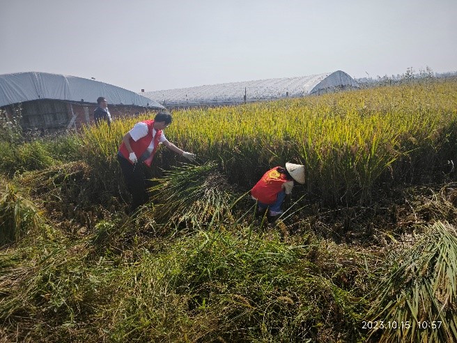 10月15日,P站视频 志愿者前往合肥市肥东县护城社区开展“稻梦空间”水稻收割志愿服务活动。