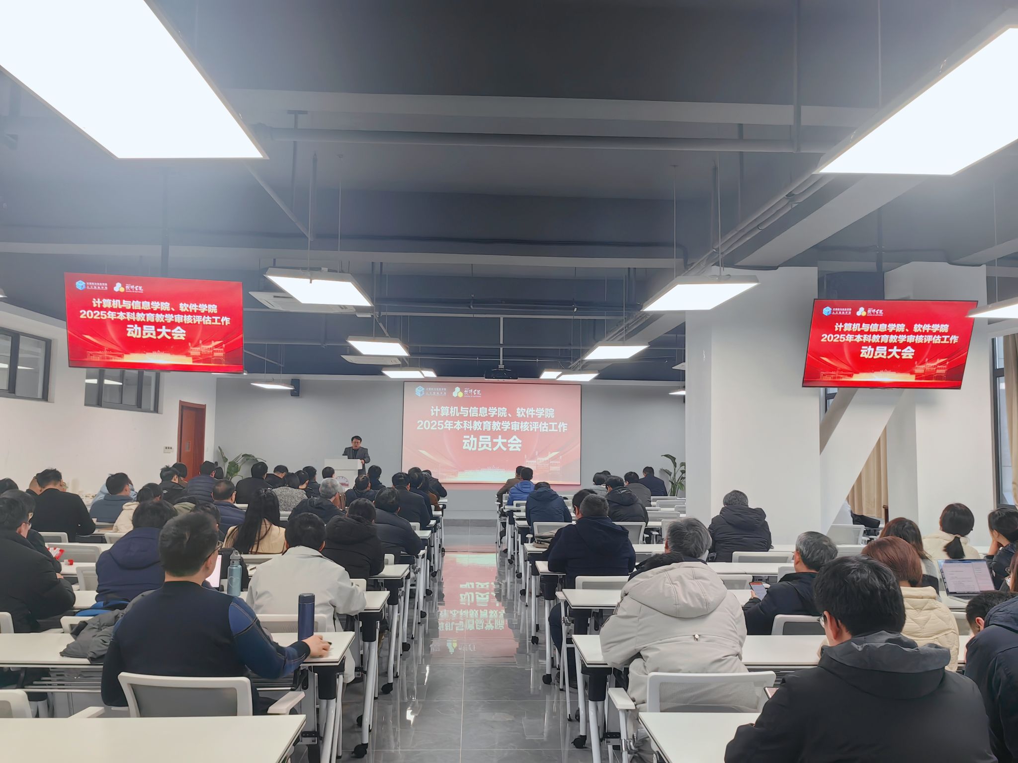 为进一步明确新一轮本科教育教学审核评估工作的要求和任务,推进各项审核评估工作有效落实,12月25日下午,学院在科教楼B501报告厅召开本科教育教学审核评估工作动员大会。学院领导班子成员及全体教职工参加会议。