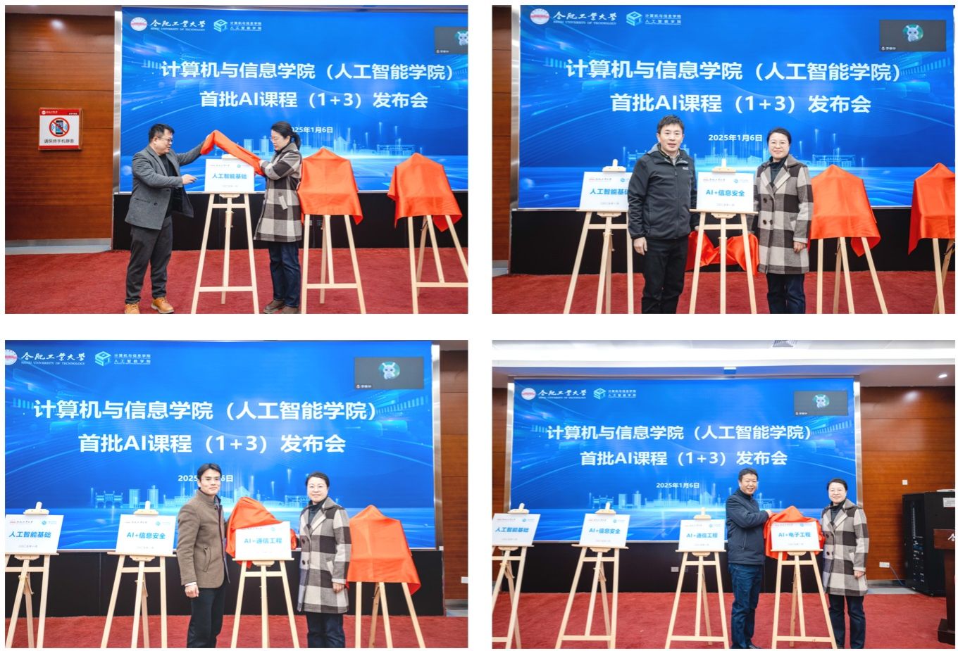 2025年1月6日,在翡翠科教楼第四会议室,学院隆重举行了首批四门AI课程的联合发布会。我校教务处处长张莉、副处长张毅、科长高榆、校内多个兄弟学院的教学院长、P站视频