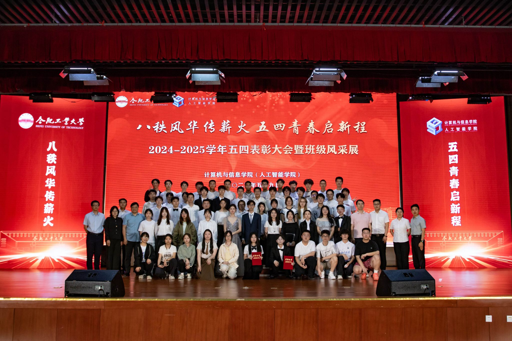 大会在庄严的团歌声中拉开序幕,熟悉的旋律瞬间点燃了现场的青春激情,让大家更加深刻地感受到五四精神的磅礴力量。张海林代表学院向受表彰的先进集体和先进个人表示热烈的祝贺。肯定了过去一年,学院共青团工作在学校团委领导下,在思想引领、凝聚力量、筑梦青春、文化传承等方面取得的显著成效。他向全体青年学生提出四点希望:一是坚定理想信念,厚植家国情怀,做新时代的“追光者”,把对祖国血浓于水、与人民同呼吸共命运的情感贯穿学业全过程、融汇在事业追求中;二是投身科技创新,勇攀科技高峰,做新时代的 “拓荒者”,要抢抓机遇,主动参与 “人工智能 +” 行动,在大模型创新、核心技术研发等领域贡献青春智慧;三是传承优秀文化,增强文化自信,做新时代的 “传承者”,要积极参与文化传承创新实践,在非遗保护、文化创意、国际传播等领域展现作为;四是发扬奋斗精神,投身社会实践,做新时代的 “实干者”,要积极参与乡村振兴、生态保护、基层治理等国家战略,到艰苦环境中磨砺品格,锻炼成长。学院团委副书记叶璟宣读了《关于表彰 2024-2025 学年学院共青团工作先进集体和先进个人的决定》的表彰文件。与会老师为2024-2025学年校级五四红旗团支部、优秀团支部书记、先进团支部、优秀共青团干部、优秀共青团员等先进集体与个人代表颁发了荣誉证书。颁奖典礼后,荣获“校优秀团支部书记”称号的计算机科学与技术2022级3班罗敏郡同学以“青春心向党,计科创未来”为题,从“心路启航,思想引领”“心创未来,创新创业”“心行融通,知行合一”三个方面分享了班级团支部建设经验。通信工程2022级1班学生代表翟茜同作交流发言。