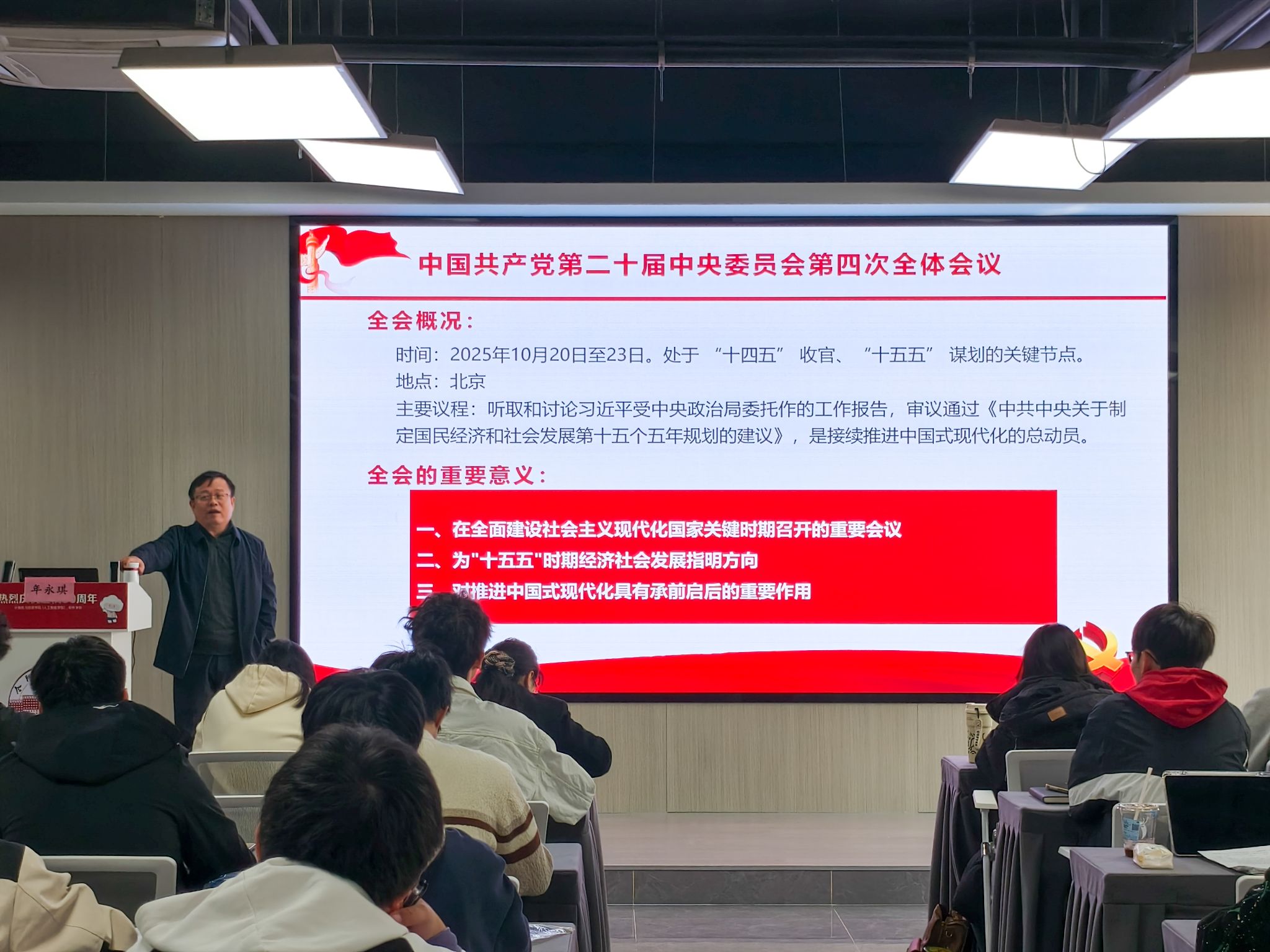 典礼结束后,院党委书记年永琪以“学习党章固根本,领悟精神明方向”为主题讲授专题党课,从把握《中国共产党章程》的核心要义与精神实质、全面领会二十届四中全会的战略部署与时代篇章、青年学子新时代科技报国的使命担当与行动方向三个层面,引导同学们对《中国共产党章程》及二十届四中全会精神进行深入学习,并寄语同学们要筑牢思想根基,做党章的忠实学习者,紧扣专业实践,做全会精神的践行者。