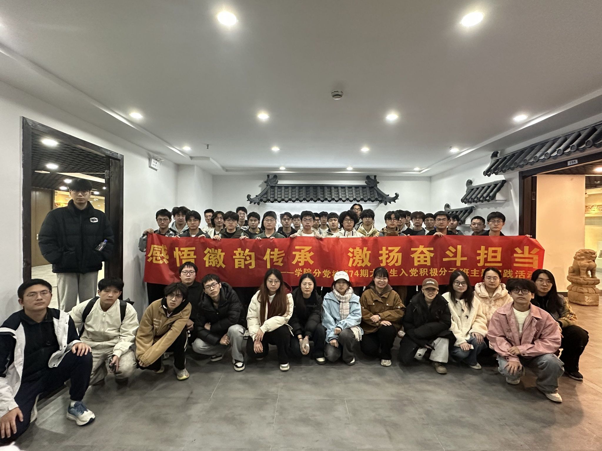 、软件学院分党校第74期大学生入党积极分子班学员走进翡翠湖校区建筑艺术馆徽派建筑文化展示中心,开展以“感悟徽韵传承,激扬奋斗担当”为主题的实践研学活动,培训班全体学员参加。