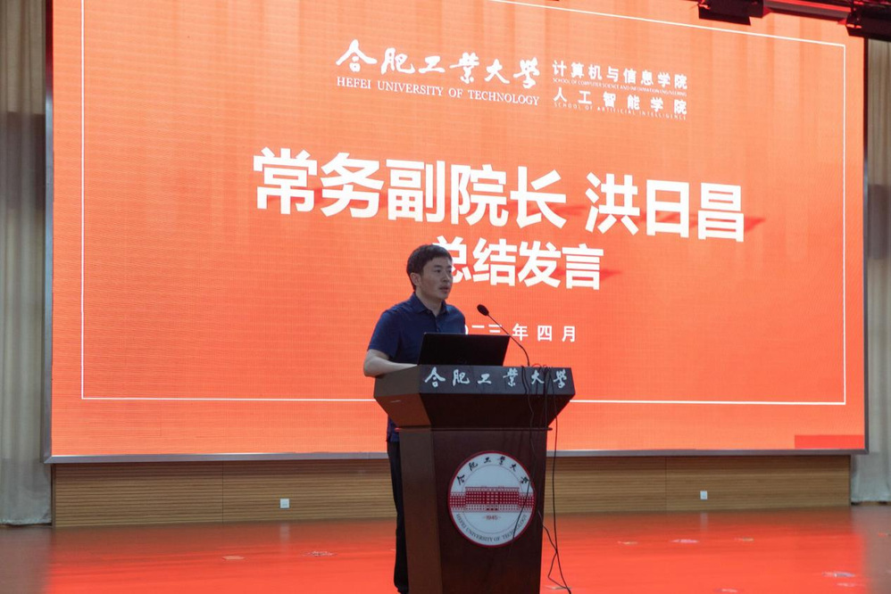 Zheng Rongmei, an official at the department level, read out the commendation decision for advanced individuals in the School of Computer and Information Science for the 2021-2022 academic year. Wang Jiamin, a recipient of the National Scholarship, an outstanding graduate of Anhui Province, and a master's student in Computer Science and Technology in the class of 2020, spoke as a student representative. She called on her classmates to use their ideals to illuminate the path ahead, to write their youth with hard work, to hone their skills through hardship, and to demonstrate their original mission and responsibility. She encouraged them to be young people of the new era who have a vision, a path, a strategy, and a sense of responsibility.