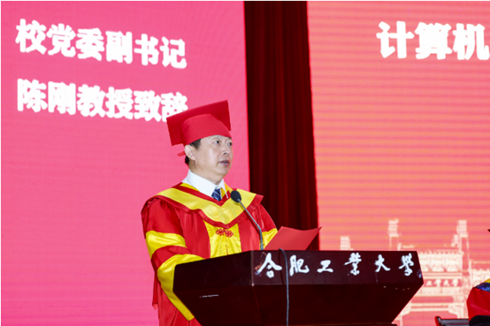 On June 15, the degree awarding ceremony for the 2023 graduates of the School of Computer and Information (School of Artificial Intelligence) was held in the lecture hall on the second floor of the Science and Education Building at the Feicui Lake Campus. Chen Gang, Deputy Secretary of the Party Committee of Hefei University of Technology, the leadership team of the college, members of the college degree evaluation committee, teacher representatives, and the 2023 doctoral, master's, and bachelor's degree recipients attended the degree awarding ceremony. The ceremony was presided over by Zhang Hailin, Deputy Secretary of the Party Committee and Secretary of the Discipline Inspection Commission of the College.