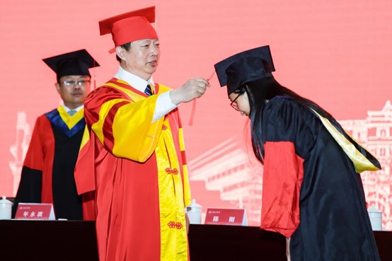 In his heartfelt message to the graduates, Chen Gang expressed three hopes for all the graduates. First, he hoped that they would take truth as their guiding principle and remain steadfast in their ideals and beliefs. He urged them to continue the spirit of serving the country through industry that has been passed down by the university and to actively contribute their efforts to the construction of a socialist modernized country, especially the development of an industrial powerhouse, by aligning their personal “small goals” with the grand blueprint of the Party and the state. Second, he encouraged them to uphold seeking truth as their foundation and cultivate excellent skills through overcoming challenges and relentless efforts. As students of the university, he urged them to continue studying diligently, enhance their abilities, shine in solving key technical problems and overcoming common technical difficulties, and actively respond to the questions of the times and of China. Third, he advised them to maintain an optimistic attitude and ensure their physical and mental well-being in the face of adversity and challenges. He encouraged them to cultivate moral character, exercise self-restraint in speech and action, and continue building their willpower, self-control, and resilience, while maintaining a calm and optimistic mindset. He also advised them to broaden their horizons, not be swayed by temporary issues, not fear risks, and bravely face challenges. Finally, he wished the graduates smooth sailing, bright futures, and the realization of their dreams.
