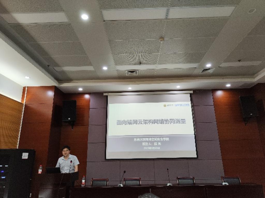 At the invitation of Director Hu Donghui of the Information Construction and Development Center, at 16:00 on June 23, 2023, Dean Cheng Guang of the School of Cybersecurity of Southeast University gave an academic report titled "Network Collaborative Measurement Oriented to End-Web Cloud Architecture" to our teachers and students in the fifth meeting room of the Jade Science and Education Building. Director Hu Donghui presided over the report meeting, and teachers and students from relevant research directions of the college attended the report meeting.
