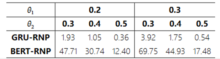 Table 1.Percentage of rationalization failure texts in the test set. Experiments on the aroma aspect of the BeerAdvocate