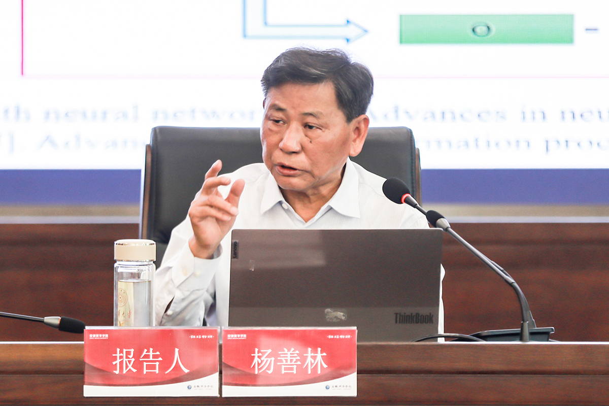 随后,杨善林院士从AIGC的快速演进过程和AIGC的科学技术基础两个方面展开。杨善林院士首先介绍了AIGC的快速演进过程,自2016年以来,数据驱动的人工智能获得了快速发展,经历了迭代升级:Transformer——Google AI于2017年推出,GPT-1(Generative Pre-Training) ;自然语言处理的第一代生成式预训练神经网络——OpenAI2018年推出,GPT-2(Generative Pre-Training) ;自然语言处理的第二代生成式预训练神经网络——OpenAI 2019年推出,GPT-3(Generative Pre-Training) ;自然语言处理的第三代生成式预训练神经网络——OpenAI 2020年推出,ChatGPT(GPT-3.5)——OpenAI 2022年推出,GPT-4(Generative Pre-Training) -----OpenAI 2023年推出。AIGC在教育、市场营销、软件工程等诸多领域有广阔的应用前景,同时它还能够加速推动生命科学、医学、材料科学、社会科学等基础科学领域快速发展。接着杨善林院士从深度学习、认知科学、决策科学、数据科学、语言学与自然语言处理、计算机视觉、复杂性科学、脑科学等领域的研究在人工智能的发展过程中起到的至关重要作用,阐述了AIGC的发展离不开基础科学与基础技术的支撑。